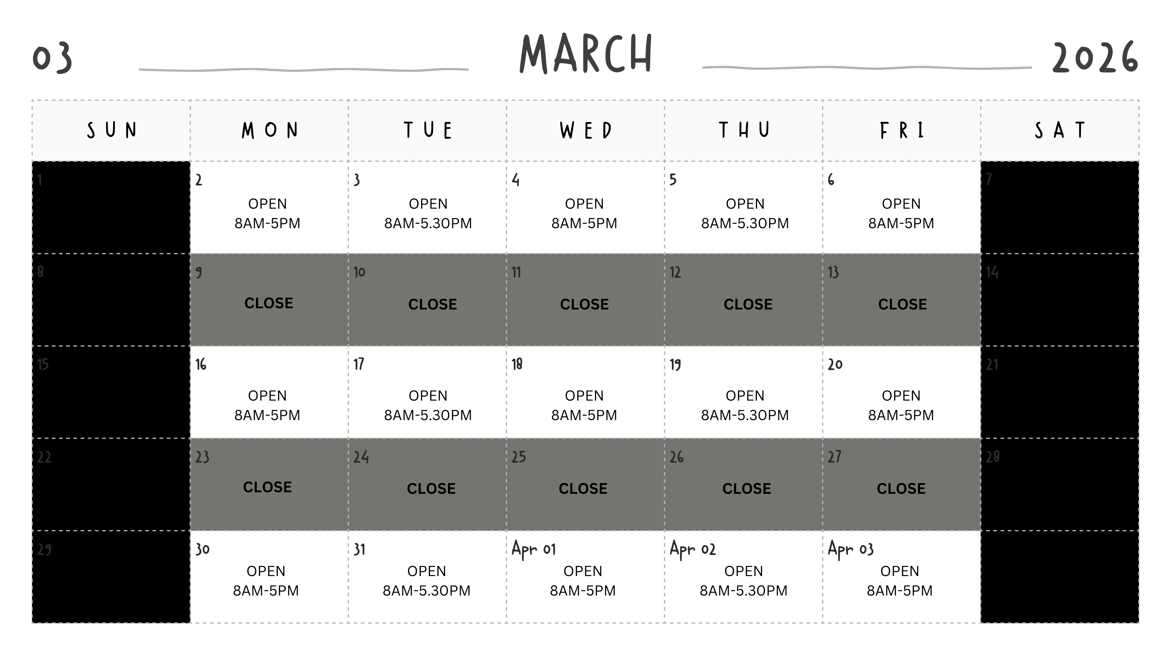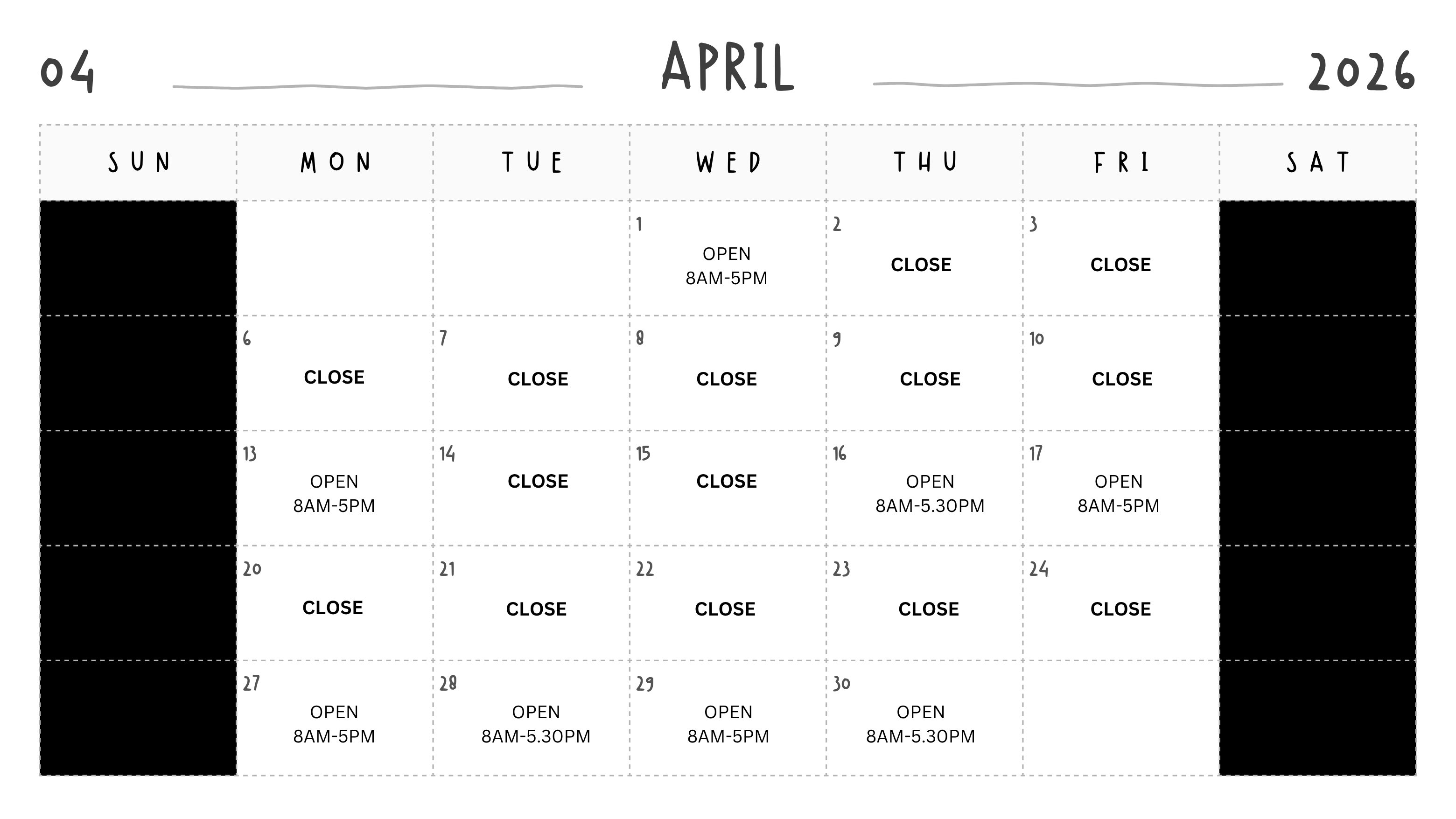 Tue, Thu: 8.00 am - 5.30 pm